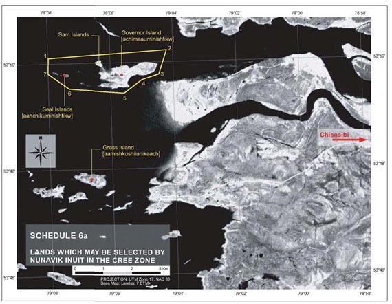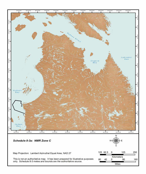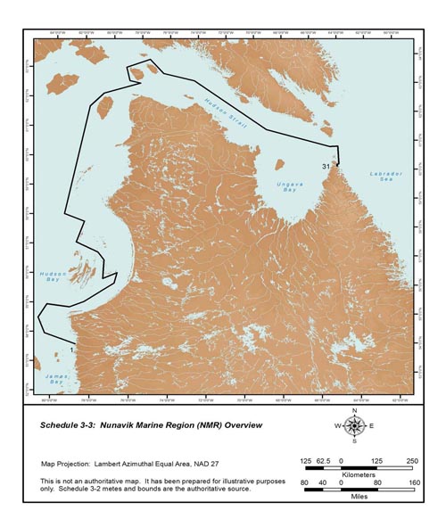 The Nunavik Marine Region portion of the Overlap Area (the NMR Portion as illustrated on Schedule 29-1a), includes all the Nunavut marine area, islands, lands and waters bounded within the following: