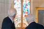 Image 22: In this photo, Aboriginal Affairs and Northern Development Canada's Deputy Minister Michael Wernick and former Speaker of the House of Commons, Peter Milliken, take in the intricate design of the window.