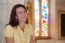 Image 31: In this photo, AANDC employee Katelin Peltier takes a break in front of the stained glass window.